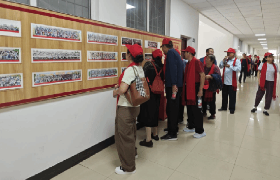 在学院工作人员的陪同下,校友们首先参观了焕然一新的学院文化墙。图文并茂的展示,系统回顾了学院的发展历程与办学成就。校友们驻足观看,重温求学时光,对学院近年来在学科建设与人才培养方面取得的显著进展深感自豪。