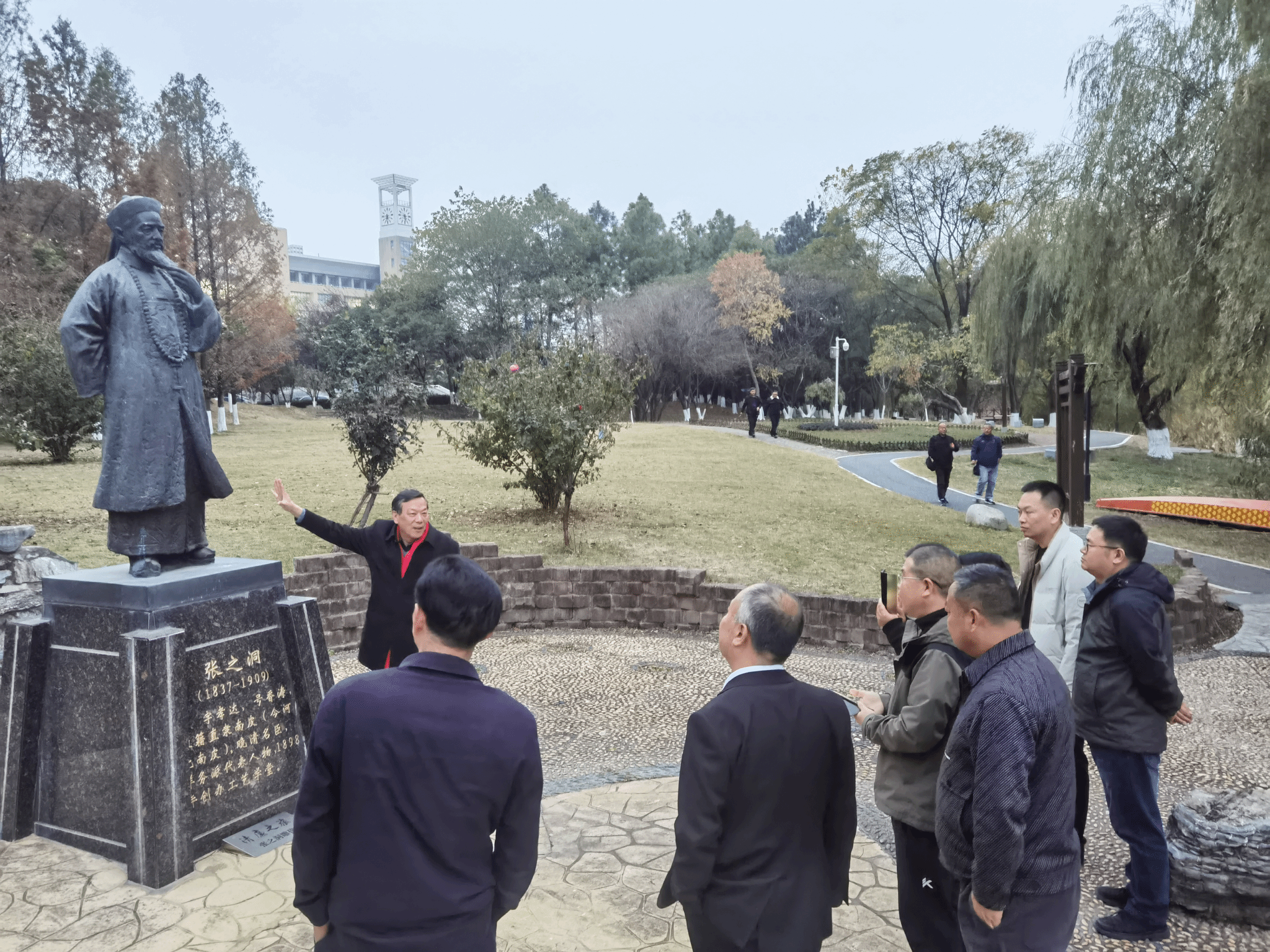 座谈会后,张之洞文献馆馆长张继才教授带领刘华一行参观了张之洞铜像、张之洞文献馆、校友名人园等地。参观过程中,刘华一行认真聆听解说,细看各类文献史料,不时驻足交流、拍照打卡留念。