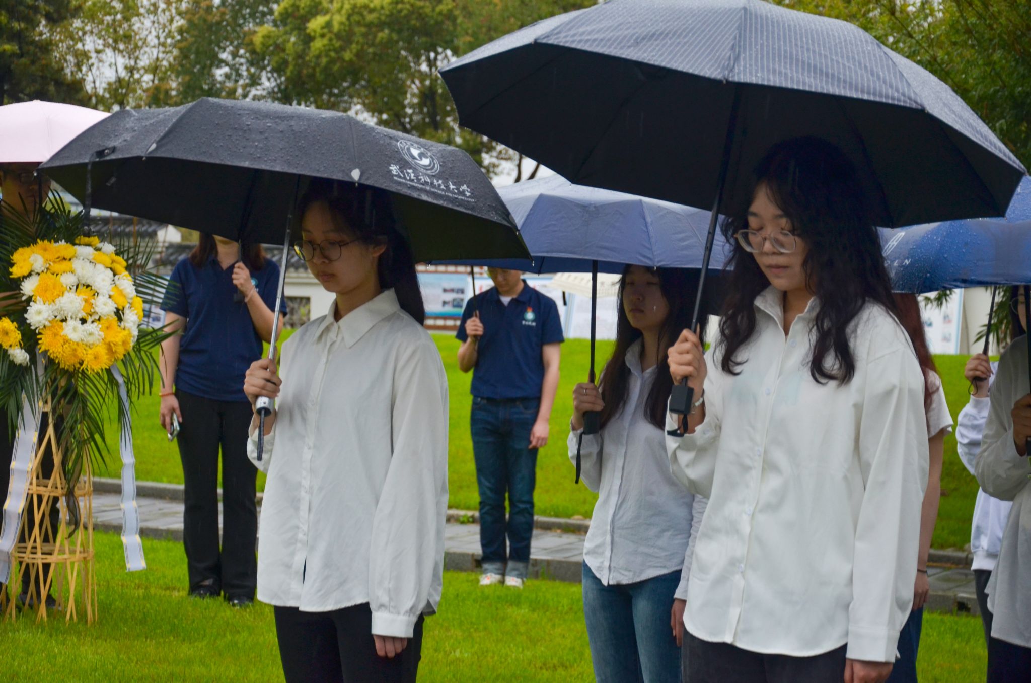 清明时节雨,最忆忠烈魂。8时整,奏唱《义勇军进行曲》,全场齐声高唱中华人民共和国国歌。国歌唱毕,师生肃立,向一代又一代武科大学子的精神旗帜许白昊烈士默哀。随后,第四期“许白昊班”考察学员代表郑重地将花篮稳放于许白昊铜像前,学院学生工作办公室主任杜逸涵、2022级辅导员王宇上前整理花篮缎带。