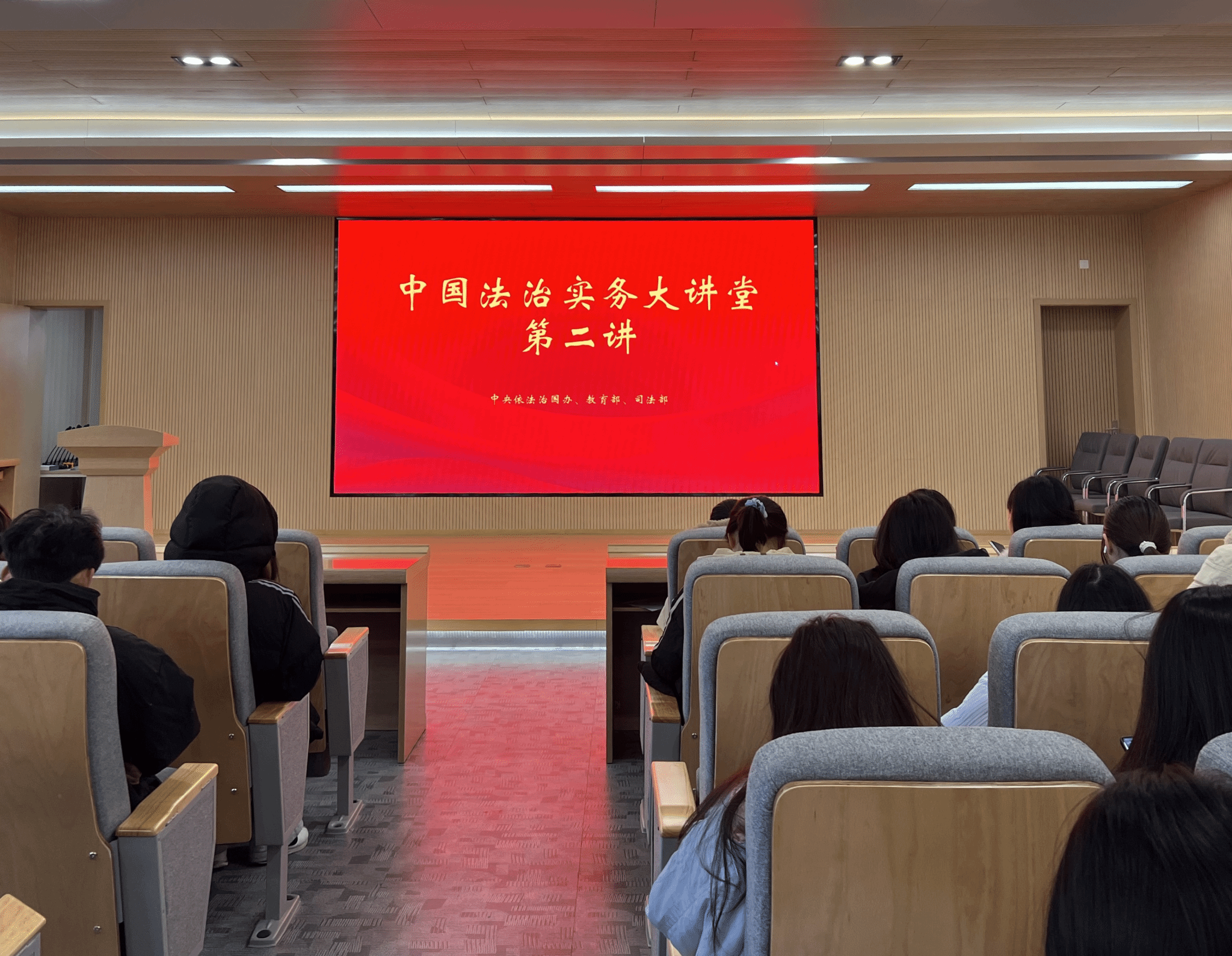 在教四楼模拟法庭开展中国法治实务大讲堂第二讲。8X8X