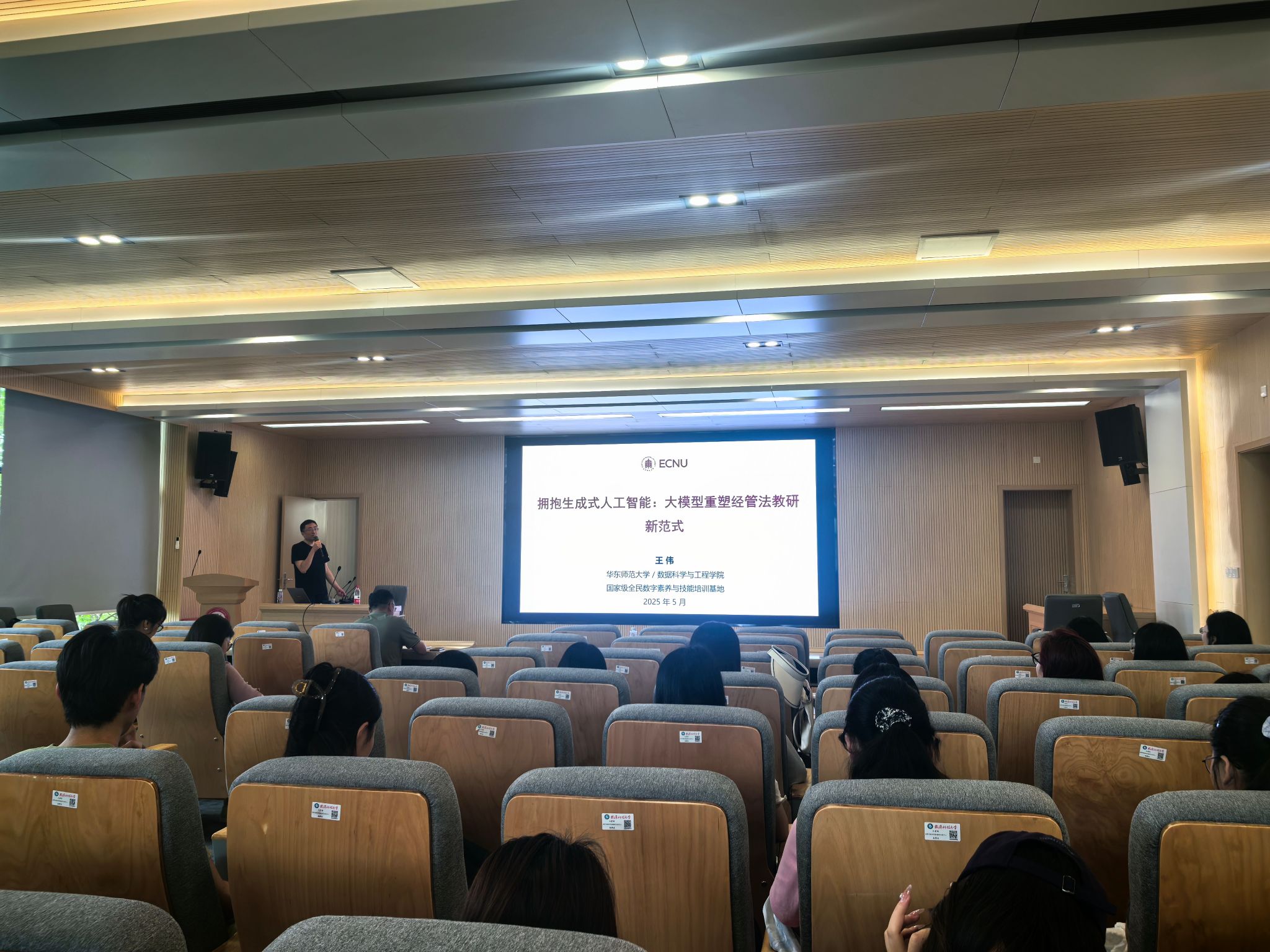 师生带来“拥抱生成式人工智能:大模型重塑经管法教研新范式”专题讲座,近百位师生代表参加,讲座由李技文副教授主持。