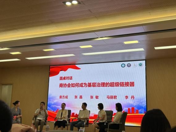张晶教授、华中师范大学中国商会研究院副院长袁方成教授、黄家湖社区书记马丽君、区中小企业协会秘书长李丹、区社会工作指导服务中心高级社工师张敏等嘉宾围绕"商协会如何成为基层治理超级链接器"展开探讨。大家指出,商协会既是资源的“聚合器”,也是治理的“催化剂”。期待通过党建引领,探索出更多“社区需求—商协会供给”的创新路径,推动商社协同向"主动共治"转变,提供专业化、可持续的服务支持。