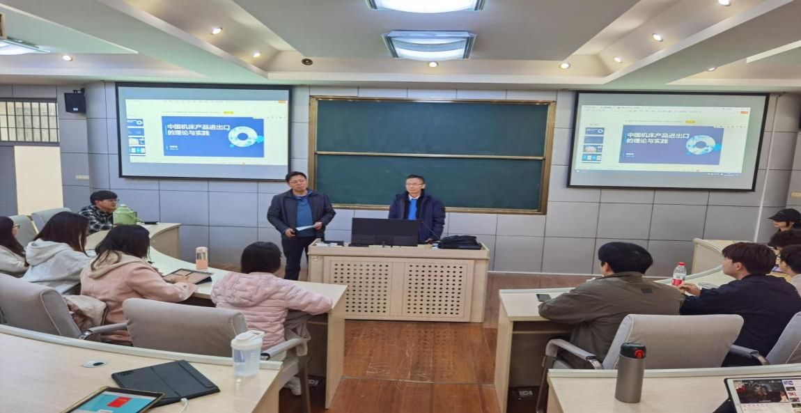 讲座的主要内容分为四个部分,第一部分是认识机床及其重要性;第二部分是我国机床行业进出口的基本情况;第三部分是机床行业未来发展趋势;第四部分是机床进出口案例和经验分享。栾总经理以幽默风趣的话语为我们展开话题,介绍了具有工业明珠之称的机床及其重要性。机床是先进制造技术的载体和装备工业的基本生产手段,是装备制造业的基础设备,主要为汽车、军工、农机、工程机械、电力设备、铁路机车、船舶等行业服务。我国已连续几年成为世界最大的机床消费国和机床进口国,是世界第三大机床生产国。讲座内容充实、逻辑清晰,现场师生反响热烈。
