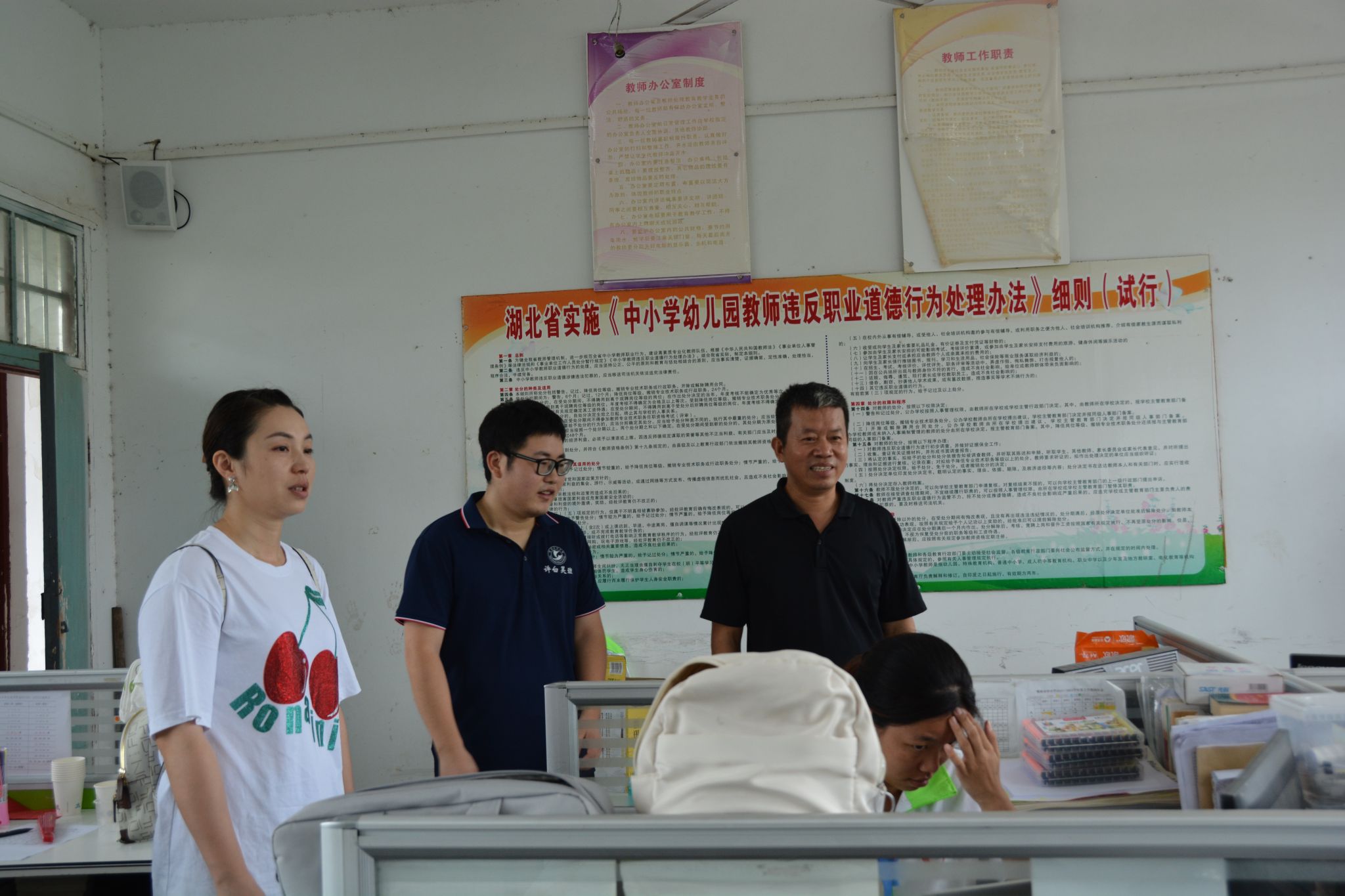 当日,梁子湖区委书记黄法松、太和镇团委书记邓雨欣一行到访,并向支教团的辛苦付出表达了感谢与慰问。