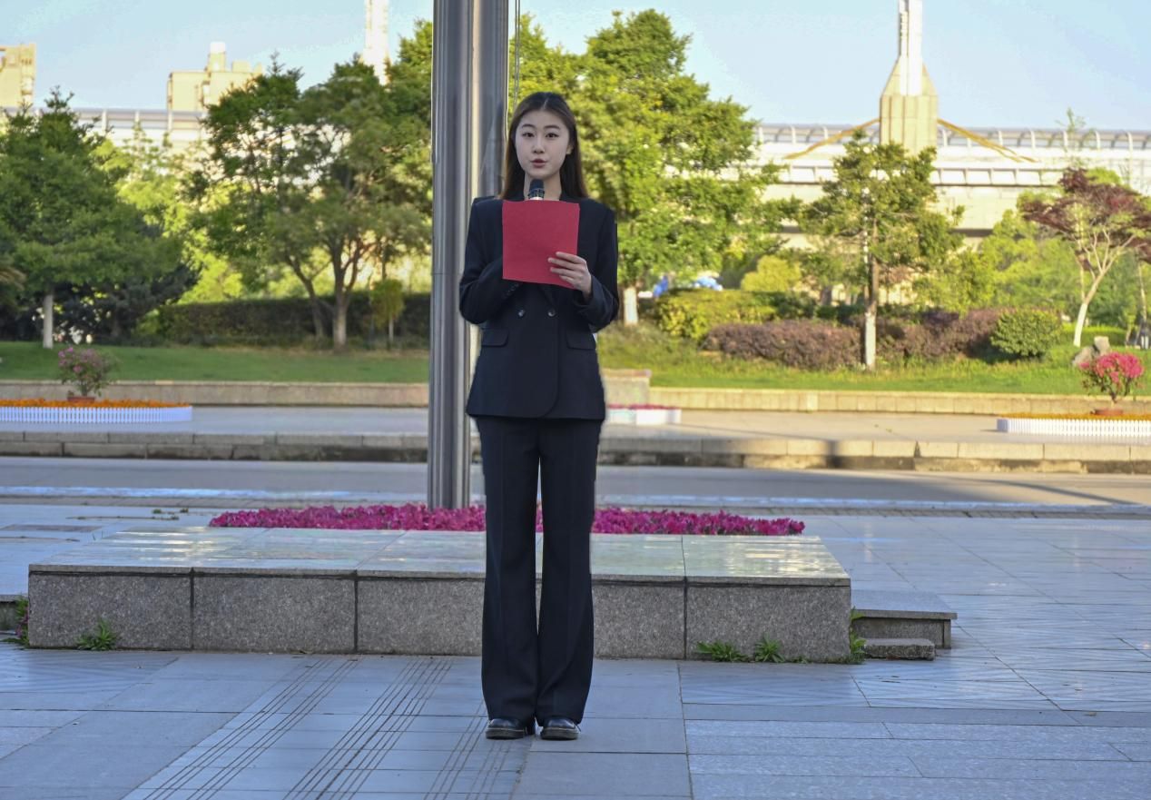 金融科技2401班徐悦作为学生代表在国旗下发言,分享新时代青年对国家安全的理解。她谈道:“作为法经学子,作为广大青年的一员,国家安全既是我们成长的沃土,更是我们肩负的时代责任。我们每个人都应努力成为国家安全的坚定守护者、积极践行者和有力传播者。”