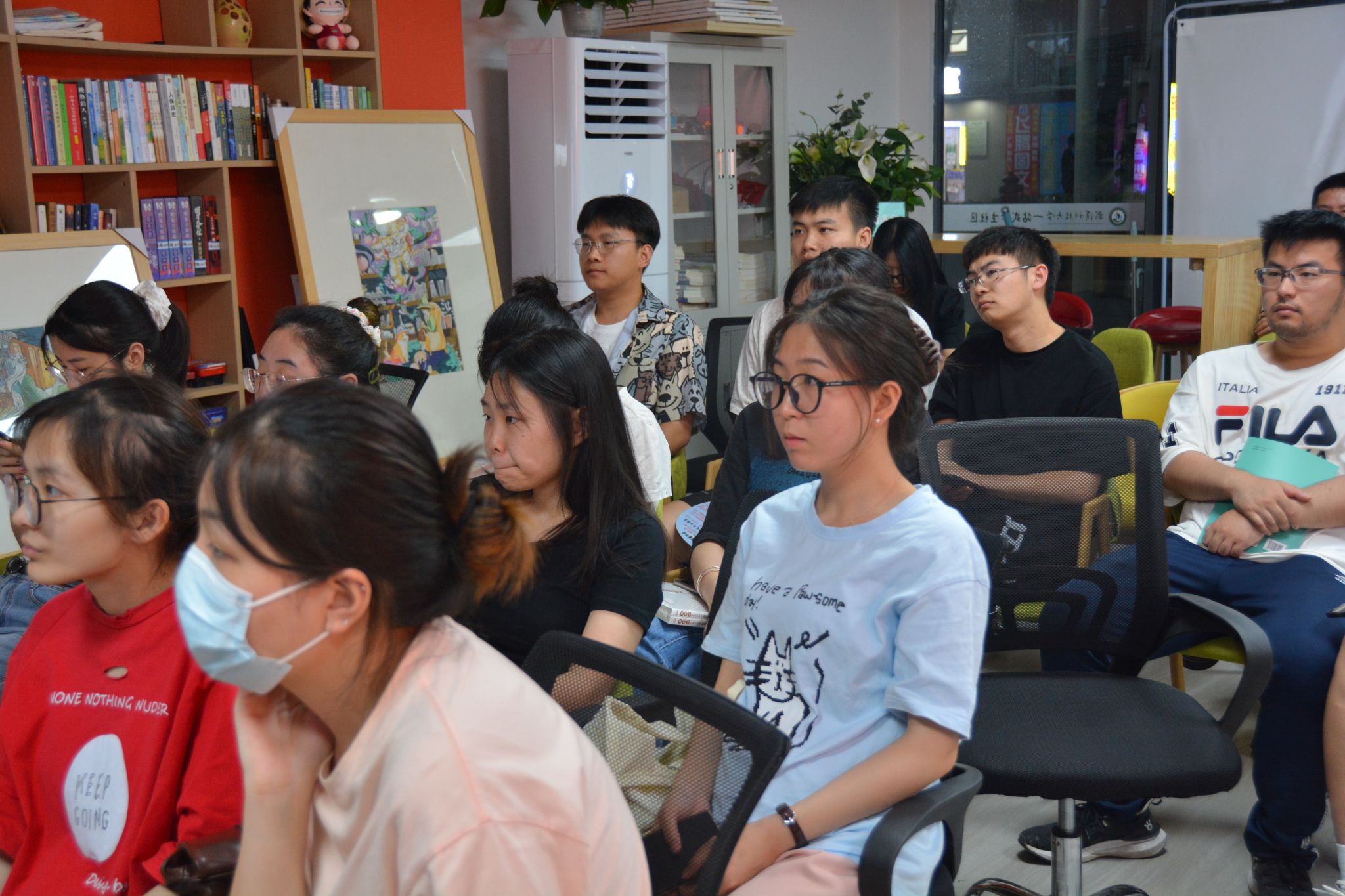 活动开始前,刘臻组织给到场学生们分发了与就业相关的免费书籍,主讲老师的和蔼可亲赢得了到场学生的一致好评。讲座内容大致分为三个部分,分别是就业态势感知、简历制作技巧和求职面试简介。刘臻就近些年来的就业形势,进行数据的列举和比较,结合图像呈现的方式,指出现今的就业形势仍然严峻问题,以此引出提升简历制作水平与提高求职面试技巧的重要性。随后,刘臻就简历的各个部分进行详细的讲解,并适时结合对真实简历案例的分析,不断总结提炼制作简历的方法和技巧。学生们认真地参与其中,当讲到重要技巧时,学生们纷纷进行拍照留存。