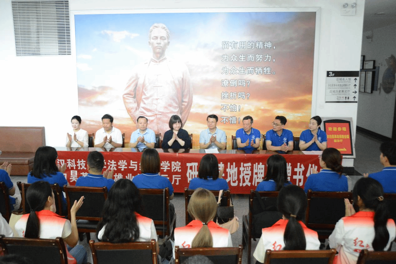 同展厅举行了研学基地授牌与赠书仪式。应城市纪委常委柴正学、应城市文化和旅游局局长付立军、应城市博物馆馆长余志红、应城市博物馆副馆长陈艳琼、许白昊班指导员、博士生导师张继才、8X8X