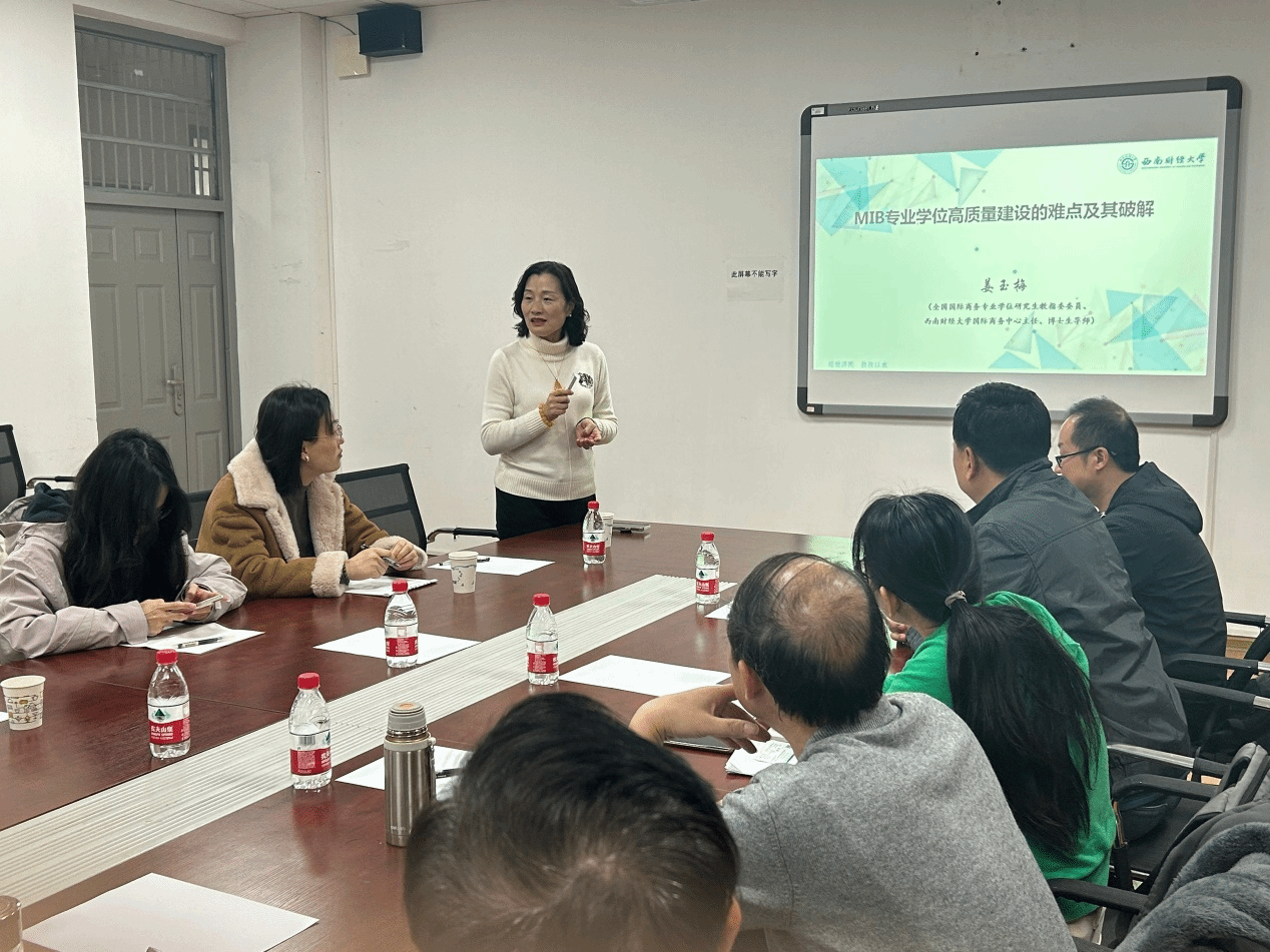 讲座结束后,姜教授与部分老师座谈,深入交流了国际商务学位点的建设经验。姜教授作为MIB学位建设领域的知名专家,从教学指委会委员的视角,结合多年学位点评估的工作经验,在充分肯定我校国际商务学位点成绩的同时,也指明了我校国际商务学位点建设存在的短板和需要改进的地方。通过这次交流,为我校进一步建设好国际商务硕士学位点指明了长远地建设方向,具有重大的指导意义。